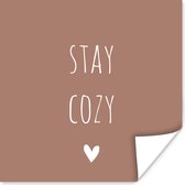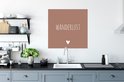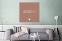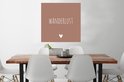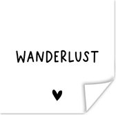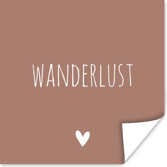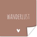 Poster Engelse quote "Wanderlust" met een hartje tegen een bruine achtergrond - 75x75 cm