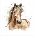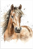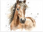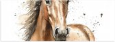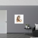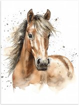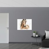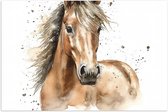 Poster Glanzend – Acryl Tekening van Kop en Hals van Bruin Paard - 80x80 cm Foto op Posterpapier met Glanzende Afwerking
