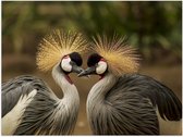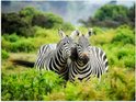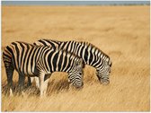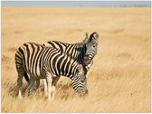 Poster Glanzend – Liefdevol Zebra Duo tussen de Planten en Struiken - 40x30 cm Foto op Posterpapier met Glanzende Afwerking