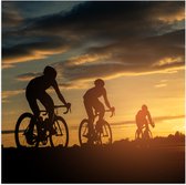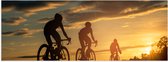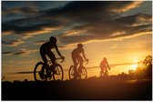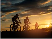 Poster Glanzend – Mensen - Mountainbiken - Zonsondergang - Fietsen - Hobby - 60x40 cm Foto op Posterpapier met Glanzende Afwerking