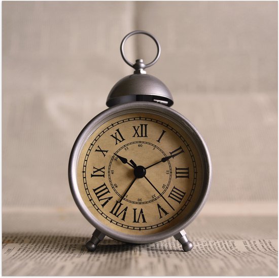 Poster Glanzend – Ouderwetse Vintage Wekker - 50x50 cm Foto op Posterpapier met Glanzende Afwerking