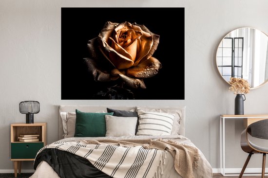 Poster Roos - Goud - Bloemen - Botanisch Zwart - 160x120 cm XXL