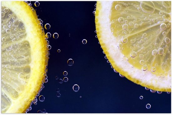 Poster – Schijfje Citroen in Water - 60x40cm Foto op Posterpapier