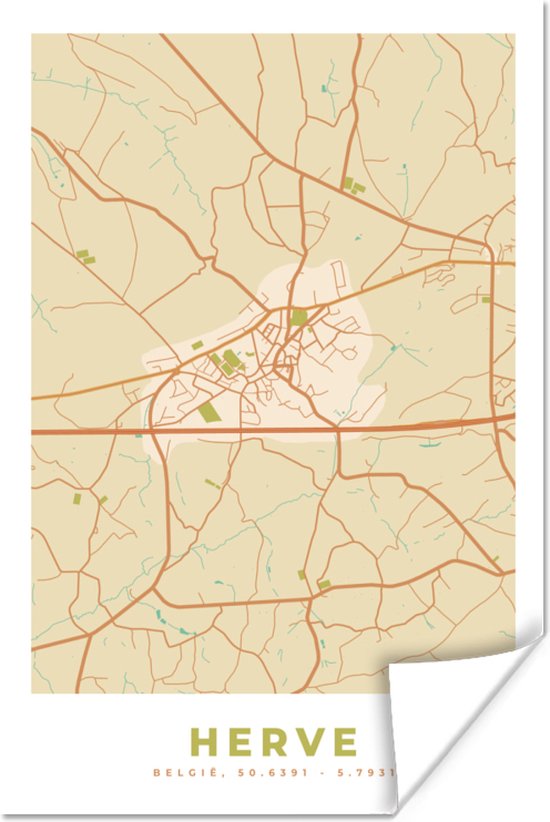 Posters - Stadskaart - Plattegrond - Kaart - Vintage - Herve - Fotoposter
