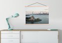 - De textielposter is verkrijgbaar met zwarte en blanke houten latten
