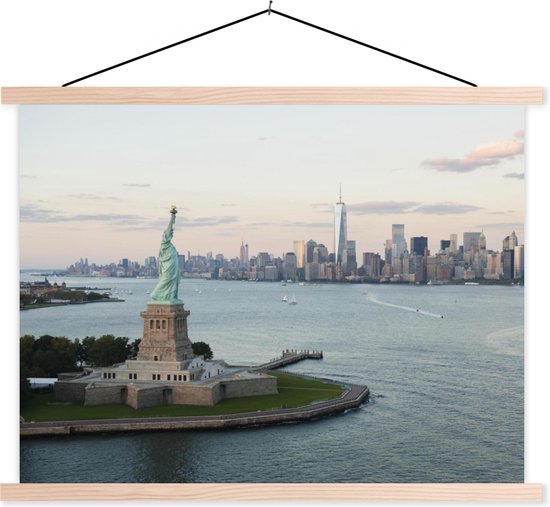 Posterhanger incl. Poster 60x45 cm - Schoolplaat - New York - Vrijheidsbeeld - Amerika - Textielposter - Blanke latten