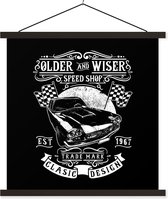 Posterhanger incl. Poster 60x60 cm - Schoolplaat - Mancave - Auto - Vlag - Retro - Textielposter - Blanke latten - Vaderdag cadeau - Geschenk - Cadeautje voor hem - Tip - Mannen