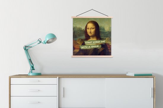 Posterhanger incl. Poster 60x60 cm - Schoolplaat - Mona Lisa - Quote - Da Vinci - Textielposter - Blanke latten