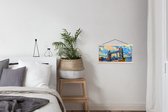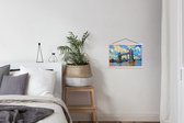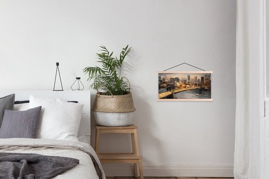 Posterhanger incl. Poster 60x30 cm - Schoolplaat - Schilderij - Skyline - Brug - Architectuur - Olieverf - Textielposter - Blanke latten