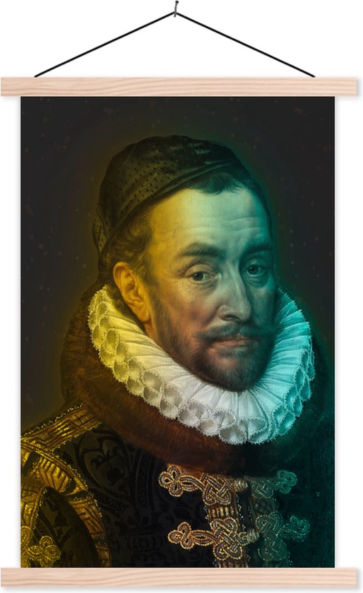 Posterhanger incl. Poster 40x60 cm - Schoolplaat - Willem van Oranje - Adriaen Thomasz - Kleuren - Textielposter - Blanke latten