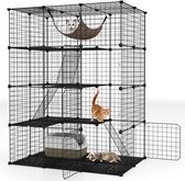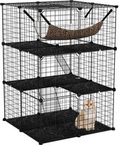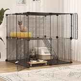 Premium binnenkattenkooi met kattenbak 2-laags kattenkooien voor binnen - grote opvouwbare kattenkooi zwart kattenren - kattenbench kat bench - kattenbak