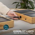 - Sluit tot maximaal 8 Dinner4two gourmetstellen aan dus bruikbaar met een grote groep mensenDe nieuwe, trendy manier om gezellig samen te gourmettenMooi en duurzaam design door de bamboe behuizingGeen vermenging van producten dus uitermate geschikt voor mensen met een allergie of voedseltolerantieMakkelijk schoon te maken dankzij de vaatwasser bestendige onderdelen