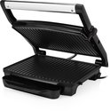 - Zwevend bovendeksel zodat ook hamburgers en goedgevulde panini’s gelijkmatig gegrilld worden