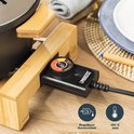 Er zit een heel lang snoer, ik denk wel 2.0 meter dus geen stekkerdoos op tafel.Vond je dit een nuttige review?150 -