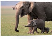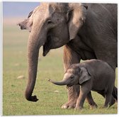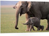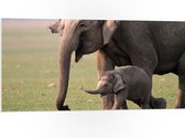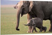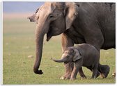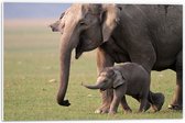PVC Schuimplaat- Blije Olifanten Moeder met Jong in Grasveld - 60x40 cm Foto op PVC Schuimplaat