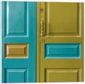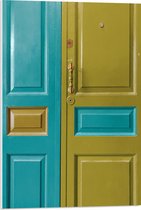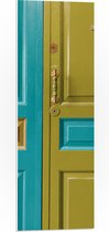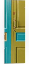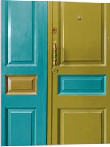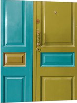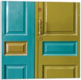 PVC Schuimplaat- Deur - Deurklink - Groen - Blauw - 50x50 cm Foto op PVC Schuimplaat