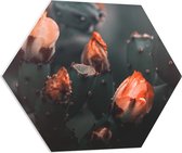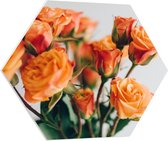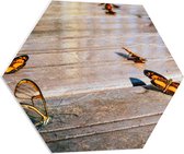 PVC Schuimplaat Hexagon - Groep Oranje Vlinders - 80x69.6 cm Foto op Hexagon (Met Ophangsysteem)