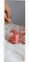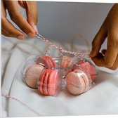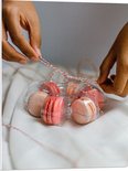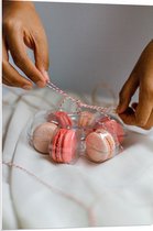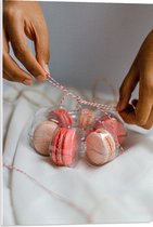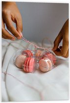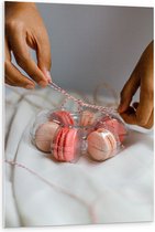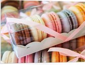PVC Schuimplaat - Macarons in Plastic Bakje met Strik - 60x80 cm Foto op PVC Schuimplaat (Met Ophangsysteem)