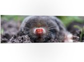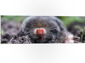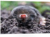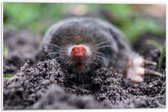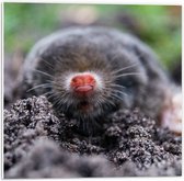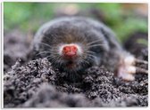 PVC Schuimplaat- Mol met een rode neus komt uit de aarde - 40x30 cm Foto op PVC Schuimplaat
