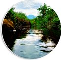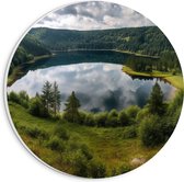 PVC Schuimplaat Muurcirkel - Sloot in het Groene Weiland onder Sluierbewolking - 20x20 cm Foto op Muurcirkel (met ophangsysteem)