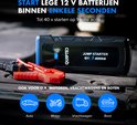 - Extreem krachtig - Dankzij het krachtige vermogen van 2000 A startstroom en 4000 A piekstroom laat deze jumpstarter alle benzine- en dieselmotoren tot 10.0 L in slechts enkele seconden starten. Daarnaast kun je met deze jumpstarter voertuigen tot wel 40x starten wanneer het apparaat volledig is opgeladen.