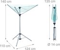 Een droogmolen is een handige en ruimtebesparende alternatieve ten opzichte van waslijnen. Het droogrek is verplaatsbaar en kan meegenomen worden. Als hij niet wordt gebruikt kan hij ingeklapt worden en is ook weer eenvoudig uit te klappen. Op het balkon, het terras of in de tuin - de droogmolen biedt met zijn 15 m drooglijn aan 3 kanten op 6 niveaus genoeg ruimte voor het wasgoed. Ook op de camping kan het droogrek worden gebruikt.