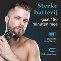 Deze tondeuse voor mannen is uitgerust met een uiterst krachtige motor van 7200 toeren per minuut (RPM), waarmee je zelfs door dik of weerbarstig haar snijdt zonder trekken of vastlopen. De messen zijn gemaakt van hoogwaardig roestvrij staal (RVS) en zelfslijpend, waardoor ze langdurig scherp blijven en nauwelijks onderhoud vergen. Dankzij de draadloze werking en de indrukwekkende batterijduur van 180 minuten biedt deze hair clipper optimale bewegingsvrijheid en betrouwbaarheid tijdens iedere scheer- of trimbeurt.
