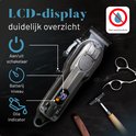 Een LCD-display toont duidelijk het batterijpercentage en geeft een waarschuwing wanneer de messen gesmeerd moeten worden. Zo weet je altijd wanneer onderhoud nodig is, wat de levensduur van de tondeuse verlengt en de prestaties optimaal houdt.