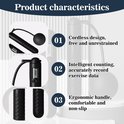 Ontdek het draadloze springtouw, perfect voor een complete workout thuis of onderweg. De verpakking bevat een slimme teltouw bal en een comfortabele zweetriem. Geniet van een vrij bewegingsdesign zonder verwarde touwen. Met intelligente telling registreert de ingebouwde sensor nauwkeurig je sprongen, trainingstijd en calorieverbruik, zodat je je voortgang eenvoudig kunt volgen. Het ergonomische handvat ligt prettig in de hand en biedt een antislip grip, ideaal voor langdurige trainingen. Dit stille springtouw is perfect voor gebruik op elk moment van de dag, zonder anderen te storen. Met vier verschillende modes (telling, calorieën, mijlen, km) om je training aan te passen en je vetverbrandingsdoelen te bereiken.