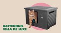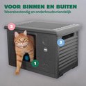 RHRQuality Kattenhuis - Villa de Luxe – Voor Binnen & Buiten – Weersbestendig & Verplaatsbaar – Met XL Ingang (22x26 cm) – Donker Grijs