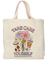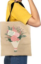 Robin met bloemen Totebag - draagtas, katoenen tas, schoudertas, canvas tas