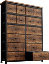 Ladekast - Ladekast - Opbergkast - Industrieel Design Ladekast - Met 7 Stoffen Lades - Vintage Bruin-Zwart - 98 x 28,5 x 85 cm
