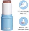 De Glow kan gebruikt worden als oogschaduw of om je jukbeenderen, schouders of decolleté een subtiele highlight te geven. De Glow en Blush Stick werken optimaal wanneer je ze met elkaar combineert. Op plekken waar je de Blush al gebruikt hebt en je er net iets extra's aan wilt geven, gebruik je de Glow Stick er net iets erboven, bijvoorbeeld bij je jukbeenderen. De perfecte combo!