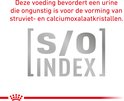 Het S/O Index logo geeft aan dat deze dieetvoeding zorgt voor een urine waarin zowel de vorming van struviet- als calciumoxalaatkristallen wordt beperkt.