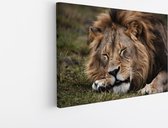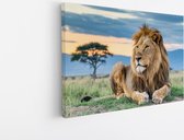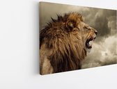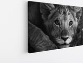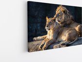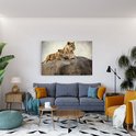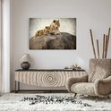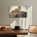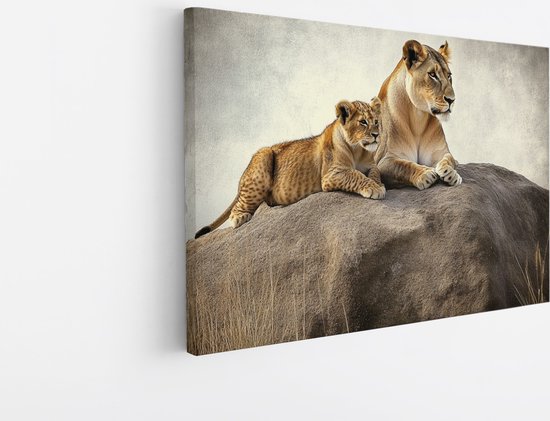 Saammp Canvas Schilderij - Leeuw met welp op steen - Dieren - Natuur - 30x20 - Foto op canvas - Wanddecoratie - Muurdecoratie Woonkamer - Slaapkamer decoratie - Canvas Print