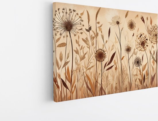Saammp Canvas Schilderij - Vintage Bloemen - Natuur -Abstract - 70x50 - Foto op canvas - Wanddecoratie - Muurdecoratie Woonkamer - Kantoor Decoratie