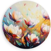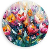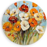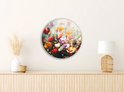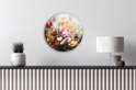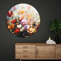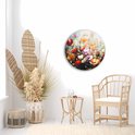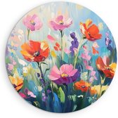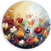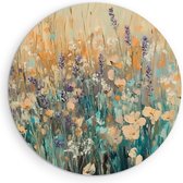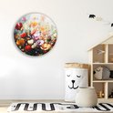 Saammp Muurcirkel Hout - Kleurrijk Bloemenveld Schilderij - Abstract - Natuur - Ø 30 - Wandcirkel - Wanddecoratie Cirkel - Modern Interieur - Woonkamer Decoratie
