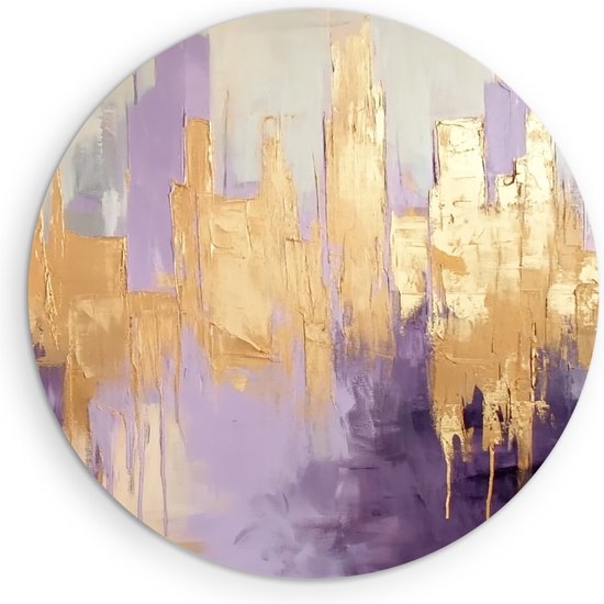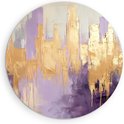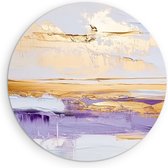 Saammp Muurcirkel Hout - paars goude horizon - Abstract - Ø 90 - Wandcirkel - Wanddecoratie Cirkel - Muurdecoratie Woonkamer - Slaapkamer decoratie - Rond Schilderij