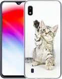 Telefoonhoesje Geschikt voor Samsung Galaxy A10 hoesje - Kitten - Poot - Wit - Meisjes - Kinderen - Jongens - Kind - Siliconen Telefoonhoesje Telefoonhoesje