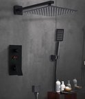 SaniSupreme® Doucheset Genua Premium de Luxe LCD 10 inch regendouche vierkant 2-weg zwart inbouw