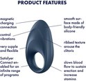 Met alle plezier naar het hoogtepunt toe - maar kan het ook met stijl? De Satisfyer Mighty One maakt dat mogelijk! Eenmaal aangebracht, geeft de app-gestuurde penisring in koningsblauw je de superkrachten die je nodig hebt voor het bedrijven van de liefde. Hij maakt van jou elke keer opnieuw een echte passionele held. Maak indruk op je geliefde met een erectie die de moeite waard is om te zien en geniet van een langdurig liefdesspel met z'n tweeën! Het gladde siliconen oppervlak zorgt ervoor dat de Mighty One zacht aanvoelt. Dankzij de brede clitorisstimulator profiteren beide partners van de intensieve trillingen: De programma's kunnen worden bestuurd vanaf het bedieningspaneel of via de Connect app - zodat jij en je geliefde samen eindeloos veel mogelijkheden kunnen ontdekken. Magisch, toch? Je wellness accessoire is uitgerust met geïntegreerde oplaadbare batterijen en is dus milieuvriendelijk. De bijpassende USB-magneetkabel wordt meegeleverd en kan desgewenst worden aangevuld met een standaard 5V-stekker.