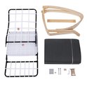 Het onderstel van de stoel is van naturel berkenhout. De bekleding is van 100% katoen, met een zachte sponsvulling. Het frame van de zitting is van metaal. De stoel is voorzien van een afneembare hoofdsteun.