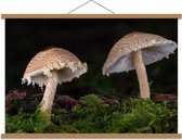 Schoolplaat – Paddenstoelen op Takken - 90x60cm Foto op Textielposter (Wanddecoratie op Schoolplaat)