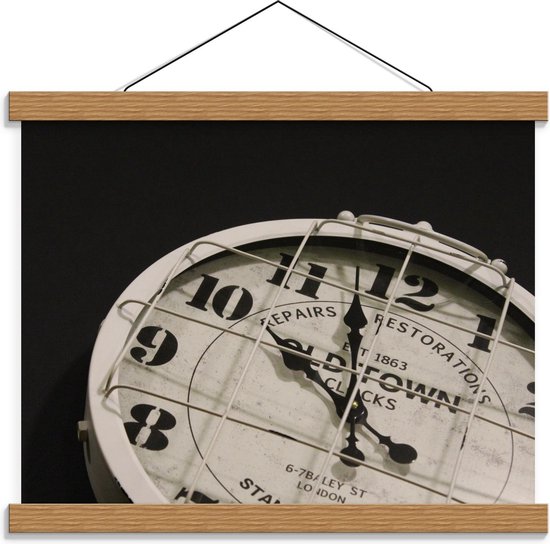 Schoolplaat – Witte Klok met Zwarte Cijfers - 40x30cm Foto op Textielposter (Wanddecoratie op Schoolplaat)