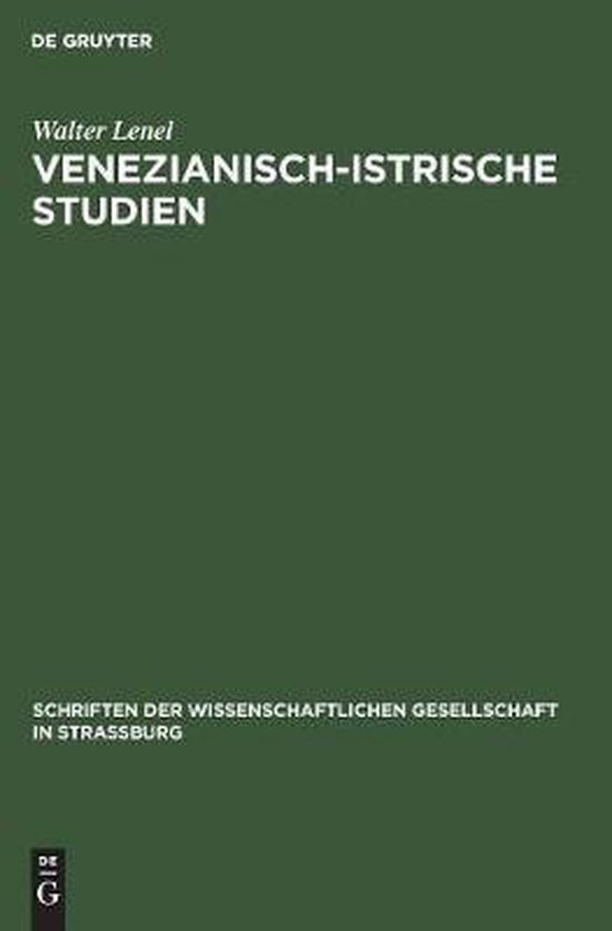 Schriften Der Wissenschaftlichen Gesellschaft in Straßburg- Venezianisch-Istrische Studien