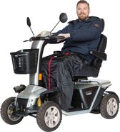 De scooter cosy beschermt uw onderlichaam tegen wind en regen (werkt als een slaapzak). Door de open basis aan de onderzijde kunt u uw voeten positioneren aan beide kanten van het stuur. Inclusief solide ritssluiting over de gehele lengte en gewatteerde vachtvoering. Ideaal te gebruiken in combinatie met de mobility poncho voor een totale bescherming tegen slechte weersomstandigheden. L 120 x B 110 cm.