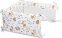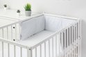 De dunne bedbumper van Sensillo is een alternatief voor dikke en zware bumpers die veel worden gebruikt in kinderbedden. De dunne anti-allergische eivormige vulling zorgt voor voldoende isolatie, beschermt het kind tegen verwondingen tijdens het bewegen in het bed, is vooral veilig en minimaliseert het risico op verstikking. De unieke uitstraling van de bumper bestaat uit een combinatie van twee materialen. De ene kant is gemaakt van zacht en aangenaam aanvoelend katoen met een wafelstructuur en de andere kant is van katoen met een kleurrijke print. Beide stoffen zijn Oeko-Tex gecertificeerd. Om de 30 cm zorgen ingenaaide tapes ervoor dat de bumper op de juiste plaats blijft.