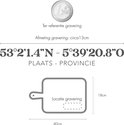 Persoonlijke houten serveerplank van Sint Geertruid - Limburg. De borrelplank heeft een scherpe lasergravure met de naam en exacte coordinaten van Sint Geertruid in de provincie Limburg. Naast het serveren van hapjes kun je deze plank ook een mooie plek geven in je interieur. Een prachtige herinnering aan de stad waar je bent geboren, het dorp waar je woont of de plaats waar je verliefd bent geworden! | Vervaardigd in Nederland en snel verzonden! | Serveerplanken houden niet van vaatwassers. | Hout is een natuurproduct, licht kleurverschil is mogelijk. | Tip: behandel de serveerplank periodiek met snijplank- of druivenpit-olie. |
