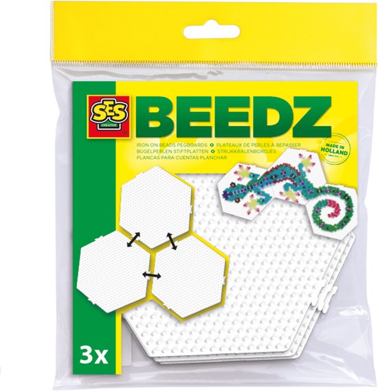 Met deze Beedz set van SES Creative maak je de mooiste strijkkralen creaties met een moderne twist. De drie koppelbare hexagon grondplaten bieden oneindig veel mogelijkheden om patronen en ontwerpen te maken. Door de bijzondere zeshoekige vorm krijgen je kunstwerken een eigentijdse uitstraling. Perfect voor kinderen vanaf 5 jaar die dol zijn op knutselen en graag iets bijzonders willen maken.