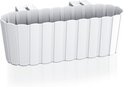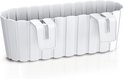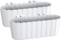 2 stuks kunststof rechthoekige balkon plantenbak/bloembak met haken wit 38 cm.